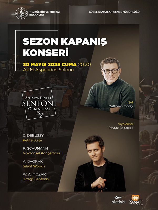 The concert features works by Debussy, Dvorak and Mozart, as well as Turkish cellist Poyraz Baltacigil who will join to play the Schumann Cello Concerto.