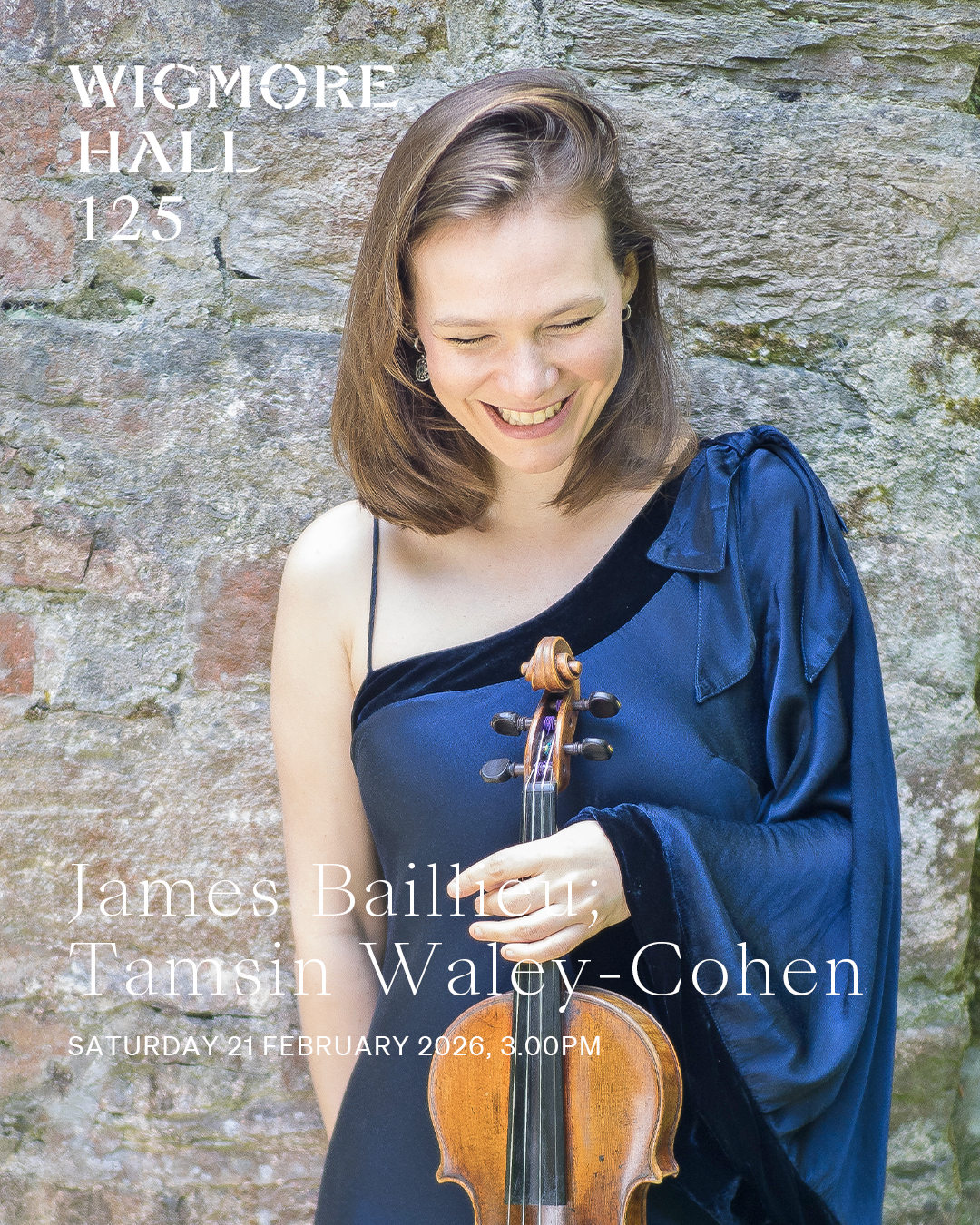 Tamsin Waley-Cohen and pianist James Baillieu perform at the Wigmore Hall today at 3pm, with works by Mozart, Haydn and CPE Bach